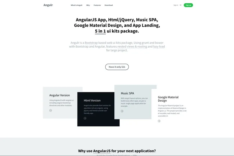 If you’re in need of a large project and you’re content with lazy load, a material design-based Materil template is perfect for you. It boasts Bootstrap 3 and AngularJS and enables nested routing. This AngularJS admin template is powerful and comes with grunt tasks, bower dependency management, save user settings, inbox app, note app, and much more. Built using Less CSS, it also has many jQuery plugins out of which a majority can work without the directive being created.