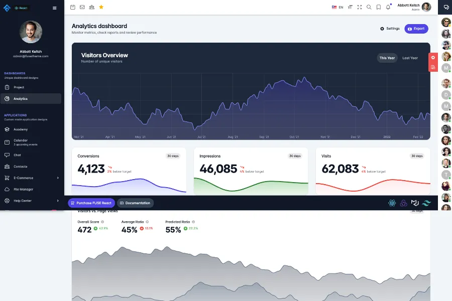 Whether you want to know how many due tasks there are, your budget summary or an overview of what your team members are doing, this clean and unique template does it on point. It’s incredibly flexible too with 10 apps that are built-in and is multi-language ready. You can choose how you want it to look from the 6 template layouts, 15 content layouts, and 18-page designs. Make your dashboard perfect for you. Any problem, you get premium support and updates are frequent and free. The responsiveness and the 3 dashboards will serve your every need.
