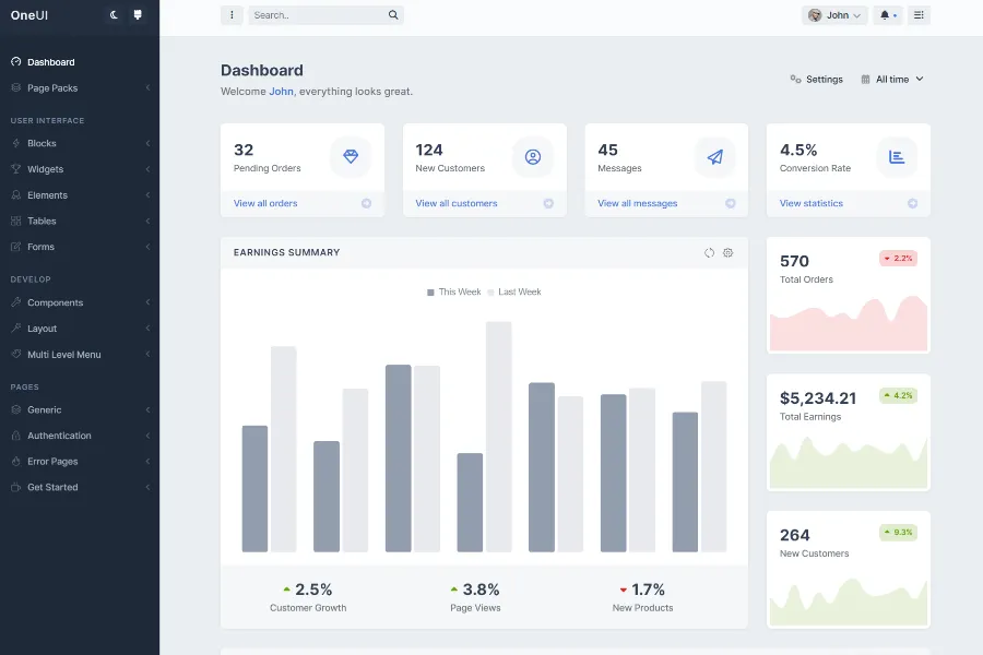 More Info DemoOneUI - Admin Dashboard Template & UI Framework