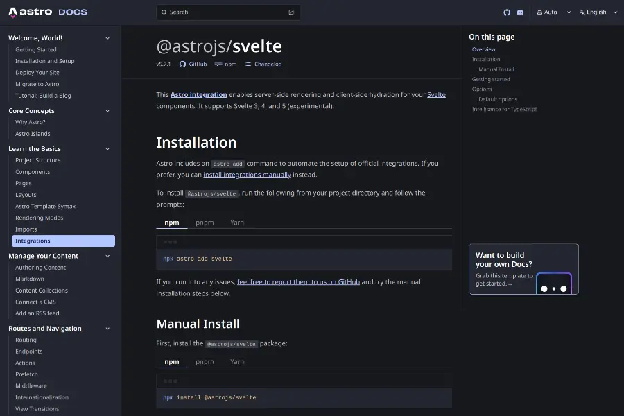 This integration allows you to use Svelte components within your Astro project. This provides you with the benefits of Svelte's efficient rendering and intuitive syntax, combined with Astro's static site generation capabilities.