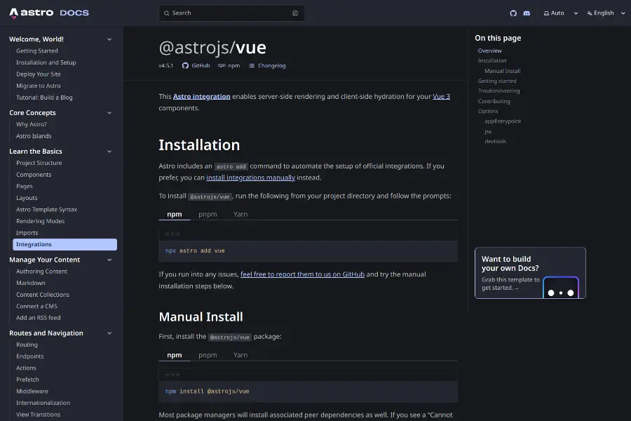 This integration enables you to use Vue components within your Astro project. This gives you the flexibility to leverage Vue's reactive data binding, component-based architecture, and powerful ecosystem of libraries.