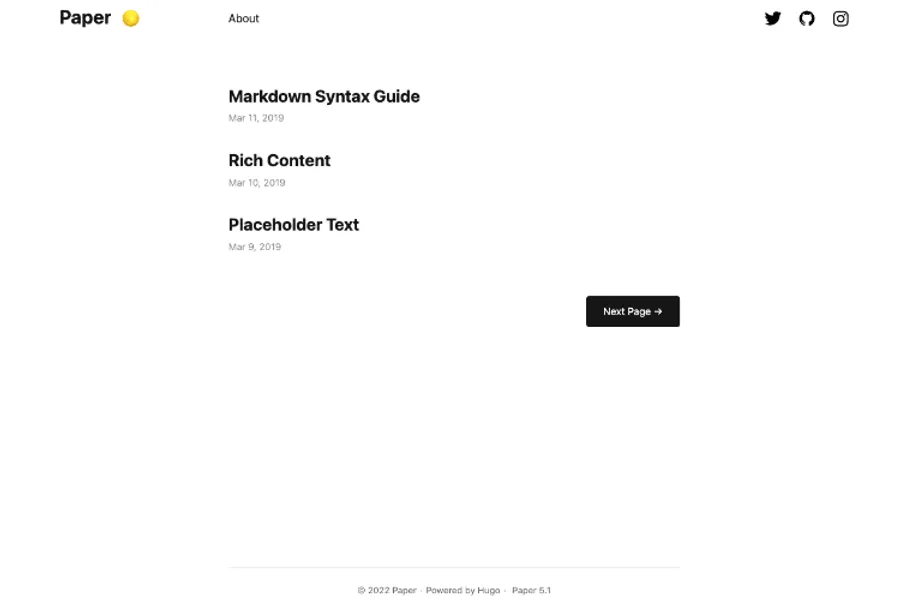 Paper is a simple, clean, and responsive Hugo blog theme. You can easily personalize this theme according to your imagination. The theme basically comes with very minimal and basic features in the demo version.