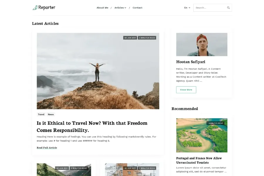 When it comes to personal Hugo blog themes, the Reporter is the best of its kind with a classic design. Moreover, it offers a clean look and straightforward functionality. This theme is well-balanced with a carefully crafted design pattern that offers an extraordinary blogging experience.