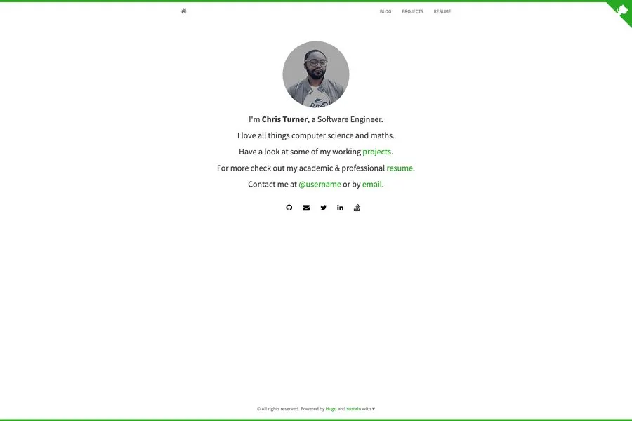 Sustain is a Hugo portfolio theme with a simple yet appealing design. Though the theme seems to be very basic, it provides all the necessary functionality to create a personal blog site. Syntax highlighting can be turned on in the front matter. Also, you can enable or disable the Comment section via Disqus comments as well as Google Analytics to keep track of important data of your site.