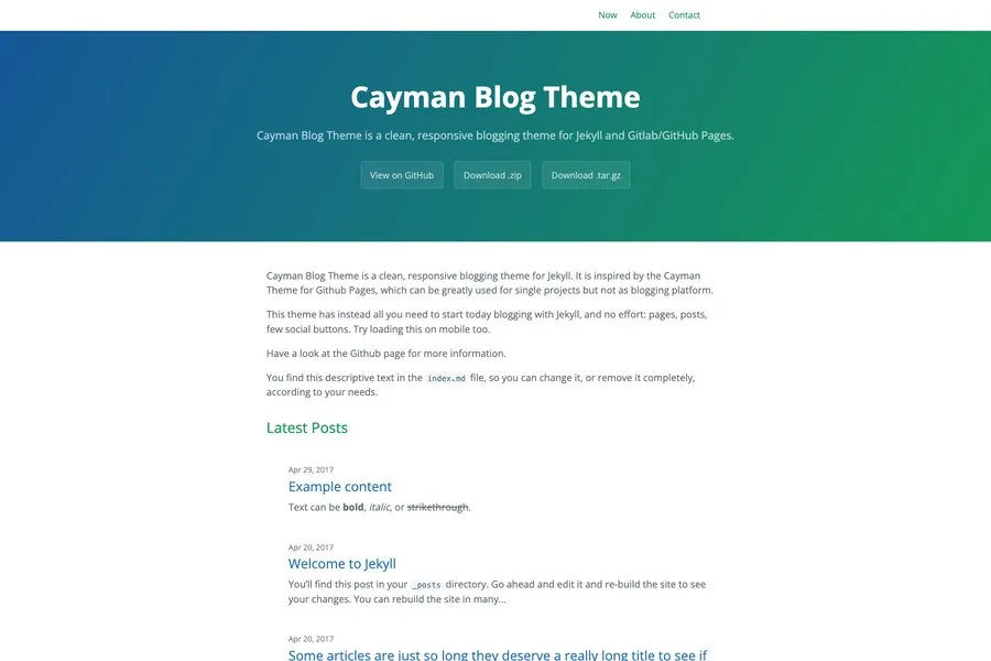 Though it includes a limited feature like Disqus comments and Analytics, it is very user-friendly. You can continue your blogging journey with this pretty simple Jekyll blog template without hesitation.