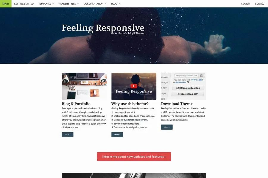 Feeling Responsive is a 100% responsive theme like its name. this one is another awesome free Jekyll landing page based on the Foundation framework. You can use this theme for multipurpose use. No matter you own a company, blog, or portfolio, this theme is fit for every case.