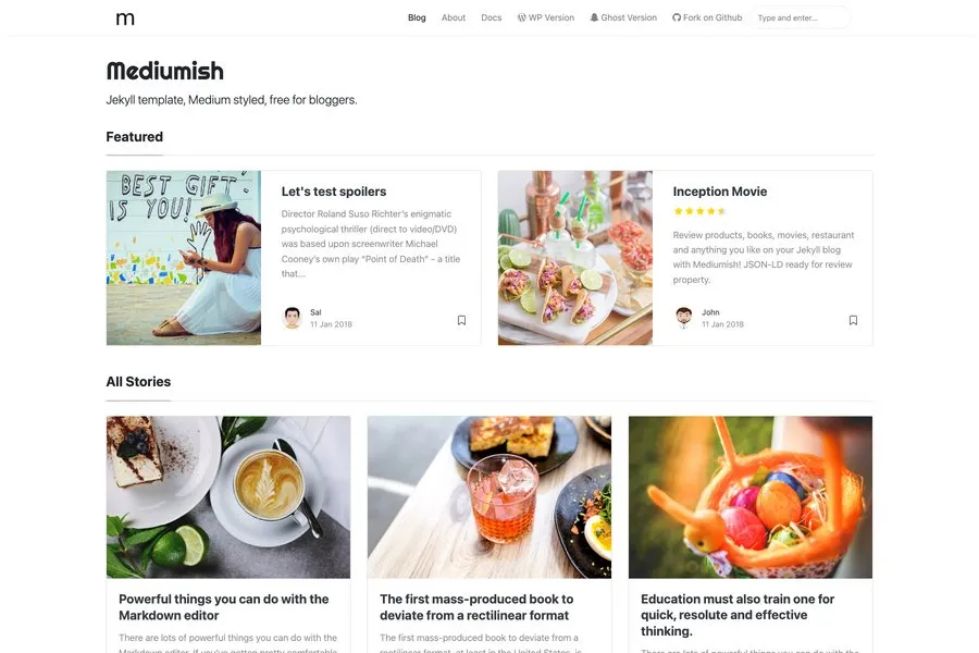 Mediumish Jekyll theme is another outstanding free theme for bloggers. I say outstanding because this one contains a lot of pro features. It is a clean, stylish, and modern template for blog or magazine templates. it supports multi authors also.