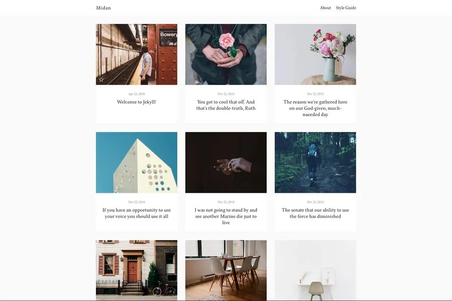 Midan is another outstanding clean and content-focused Jekyll theme. This one is perfect for the people who want to ensure a majestic appearance on the web through a Blog.