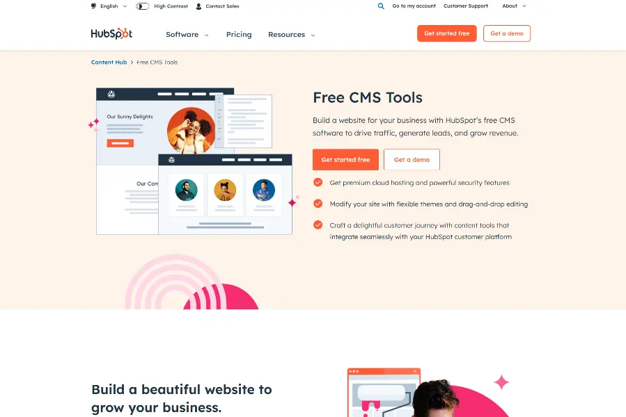 If your main goal is to drive growth through content, Hubspot CMS is a strong option. It tightly integrates with HubSpot's other marketing tools, enabling you to oversee website content, email campaigns, and analytics from a single dashboard. While a basic free version exists, the paid tiers offer advanced marketing automation essential for scaling businesses.