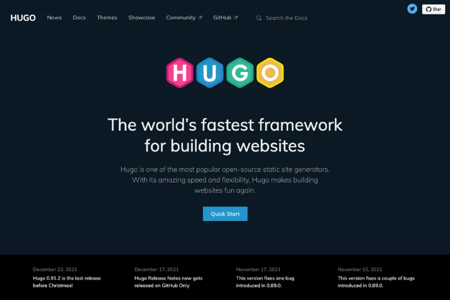 Hugo is one of our top alternatives to WordPress, and for good reason. This open-source static site generator has gained immense popularity among developers for its lightning-fast build times and simplicity.Hugo's longevity is also one of its greatest strengths. Having been rigorously tested in large-scale projects by renowned companies, it provides assurance that it is stable and here to stay.