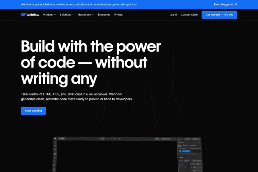 Webflow excels in visual web design, providing a drag-and-drop interface for crafting distinctive websites. It features robust animation tools and a built-in CMS for simplified content management. Webflow is a great choice for those who prioritize design flexibility and granular control.