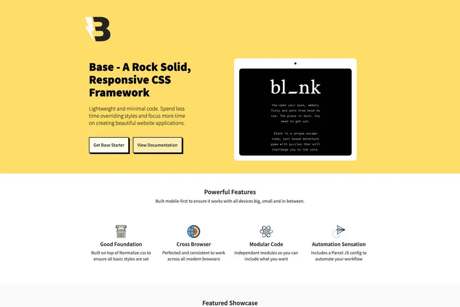 Base is lightweight bootstrap alternative framework. It is released under the MIT open source license. That means it is a community friendly and anyone can contribute here to develop the overall appearance of this framework. It is based on solid CSS with core responsive function. It is compatible with all type of devices along with the major browsers. The base is a fragile, layered framework including Normalize.css. It contains all the essential components like the typography, grids and so on.