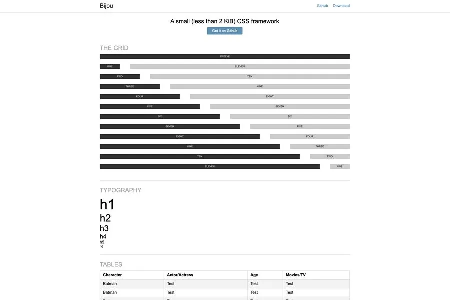 Bijou is only a 3 KB CSS framework. This 3 KB CSS framework includes The grid, Typography, Tables, Buttons & Alerts. That can be used on simple web development. It works smoothly on latest Firefox, Safari, Chrome, and IE9+. You may try it out on your next web development project.Ideal for beginners and those who want a lightweight CSS framework.