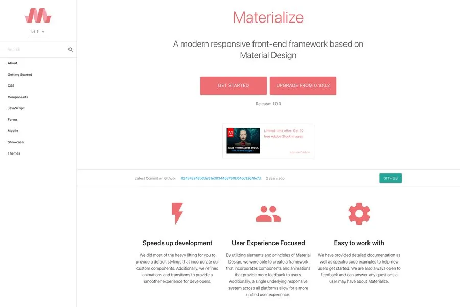 Materialize CSS is another effective Bootstrap alternative framework based on CSS, JavaScript, HTML and it is designed and developed by Google. It is a UI component library which is also known as material design. This design language is developed based on modern technology and innovation. Provide a versatile user experience along with adaptation to all types of products on any platform is the main aim of the Materialize CSS. Materialize CSS features to build consistent and functional web pages and apps that meet the demands of all latest web design principle like cross-browser compatibility, responsive to all devices and excellent user experience.