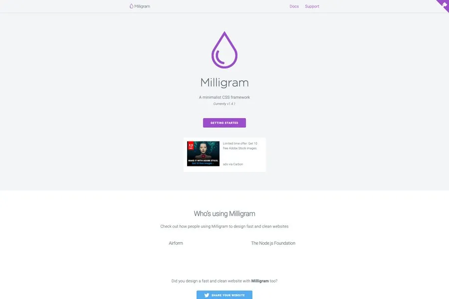 If you are a fan of minimalism & love to write clean code then you must try it. The name itself says, it's a minimalist CSS framework. With only 2kb gzipped, this tiny but powerful bootstrap alternative framework provides a minimal setup of styles for a fast and clean starting point.You get almost everything which is needed to start a project from scratch — Typography, Buttons, Lists, Styled forms, Tables and Grids.Its grid system uses FlexBox, sizes and lengths use the rem unit.Miligram can be used for any types of web development. Milligram only officially supports the newest versions of Chrome, Firefox, IE, Safari, and Opera.