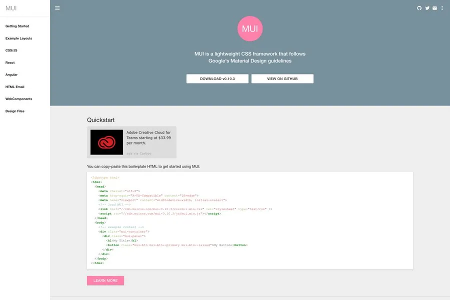 If you are a fan of material design and want to implement it in your project then go for MUI. The MUI CSS can be easily customized by using the SAAS. It has also a Recat library called MUI react library. It helps you to add MUI components to your React apps and switch seamlessly between MUI CSS/JS and MUI React even within the same app.