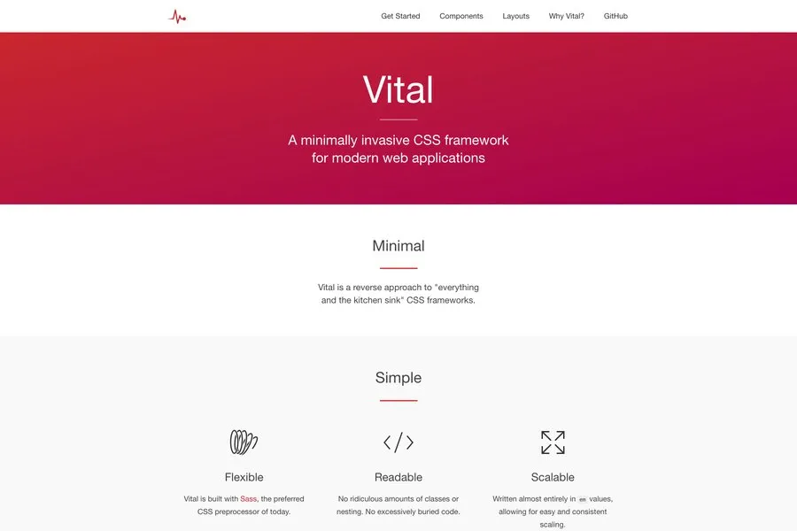 Vital is as light as a feather (6KB gzipped), and it comes with the only CSS without any JavaScript libraries. It is an entirely open source framework without any limitations. It is fully customizable and super easy to do it. You can create or customize any elements just using the CSS only. Vital is built based on Sass, and it is straightforward. There is no extra classes or nesting presence here.