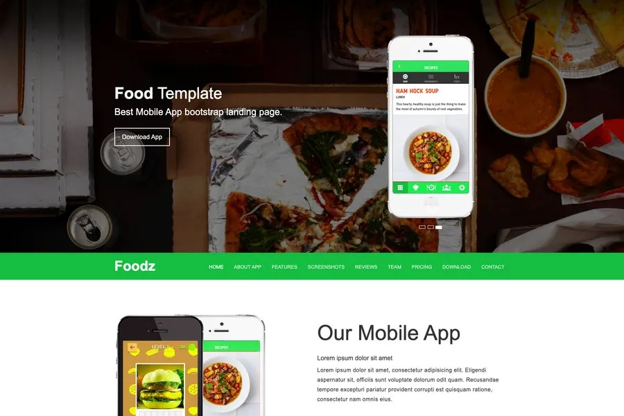 More Info DemoFoodz - Bootstrap mobile Landing page Themes