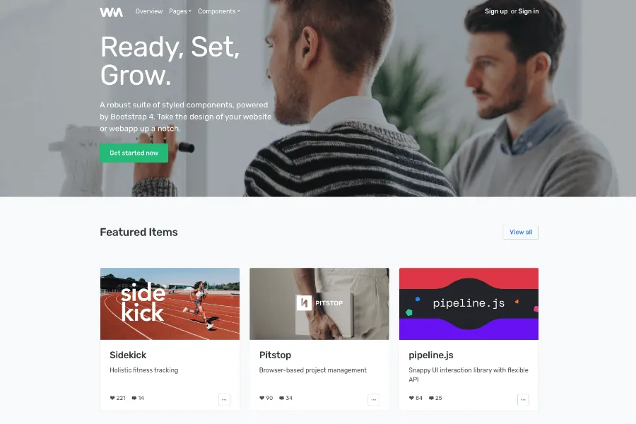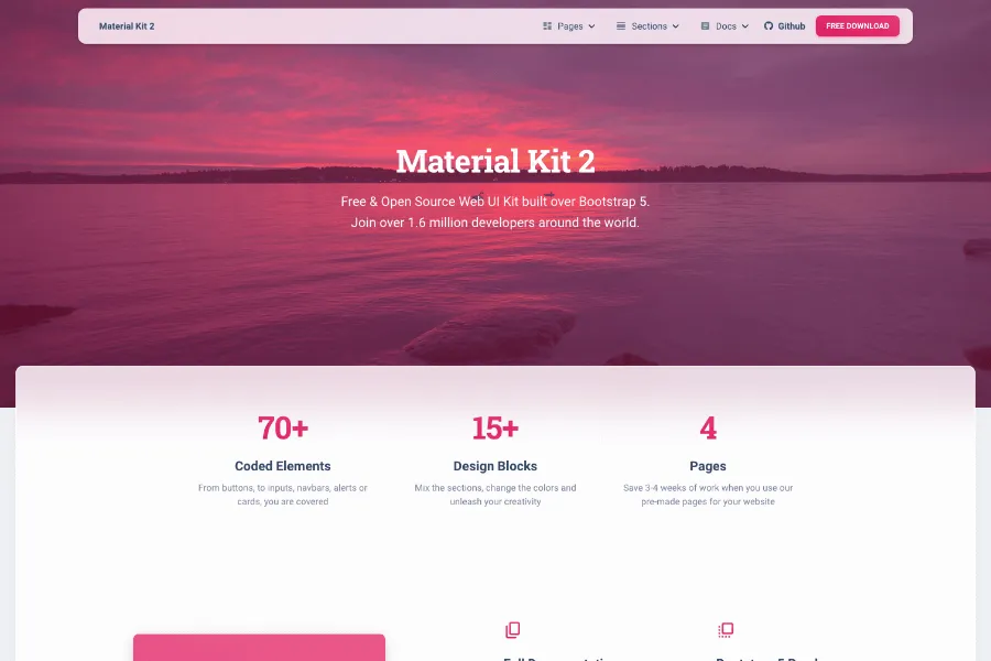 Material Kit is a refreshing and mind-blowing colorful and graphical elements enriched bootstrap template. Fortunately, it comes under the MIT license.