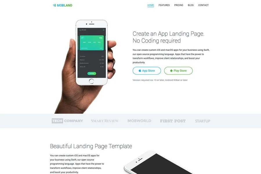 Mobland is a minimal and creative bootstrap 4 mobile app landing page template that comes from an elite author of Themeforest. It has got more than 100 sales already.