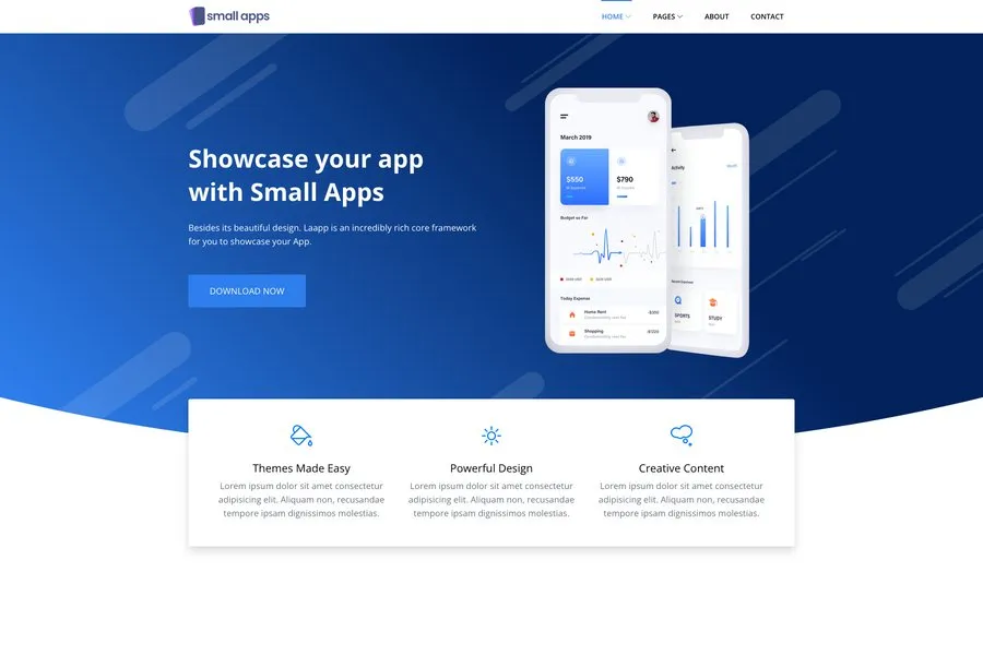 Small Apps is another great app landing, startup, or sass website business template in this list. This responsive and tempting template is crafted with 70+ components. This visually attractive multipage template comes with different homepage variants. Additionally, this template comprises 300+ lubricate customized icons.