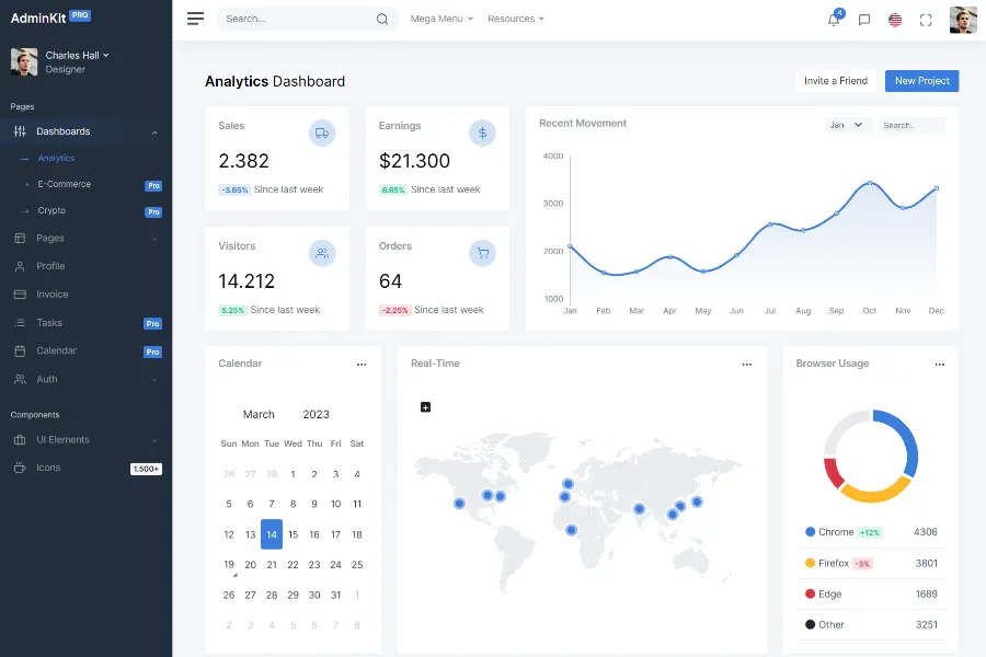 AdminKit is a professional UI component library, based on Bootstrap, that comes with hundreds of UI components, forms, tables, charts, pages, and icons. AdminKit helps you to create your next Bootstrap-based project even faster than before. It can be used to create a Saas-based interface, administrator dashboard, crypto applications, e-commerce applications, or anything you want to build on the web.