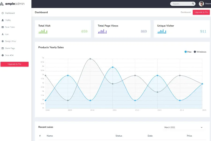 AdminPro is a freshly designed bootstrap admin dashboard template that comes with several demos. Definitely, You will fall in love with its brilliant appearance and coding. It offers both free and premium options. So you have the flexibility to choose the right one according to your need.