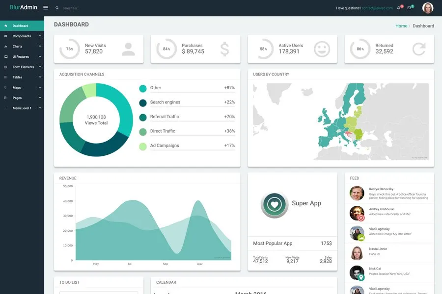 Blur Admin theme is the precious contribution of BootstrapTaste.com for the web developer community. The Bootstrap admin HTML template is powerful and intuitive and comes with open source.