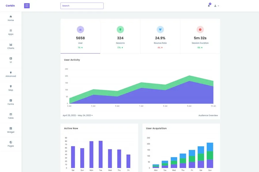 Corbin is a Simple Admin Dashboard from the same author as Arvid and Drora. Simplicity and a clean interface are the main characteristics of this admin template. It is based on the latest Bootstrap and integrated with jQuery plugins.