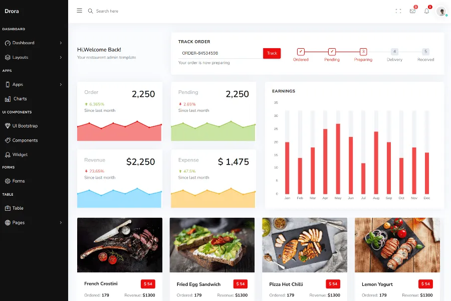 Drora - Bootstrap Restaurant Admin Dashboard Template (Premium)