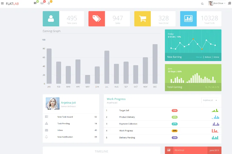 FlatLab is another premium admin dashboard template that is designed based on the flat design concept. FlatLab is based on the latest Bootstrap framework with HTML 5 and CSS3. Flatland is a very lightweight template with optimized speed. Like all the admin templates, it is also easily customizable.