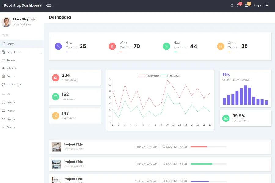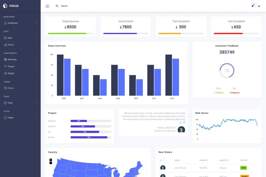 However, finding the best free bootstrap admin dashboard template for download is not an easy job. Luckily, Focus comes with almost all the necessary features. It allows you to add graphics, buttons, charts, alerts, and tables along with other necessary elements to your dashboard. With this perfect-looking bootstrap dashboard template, you can do your job in a smart way. You also find this theme on GitHubMore Info