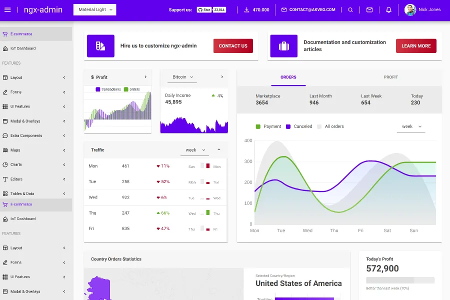 It also allows the inclusion of third-party plugins like Ngx bootstrap, Ngx data tables, E charts, and many more. However, it features a lot of components at a reasonable price.