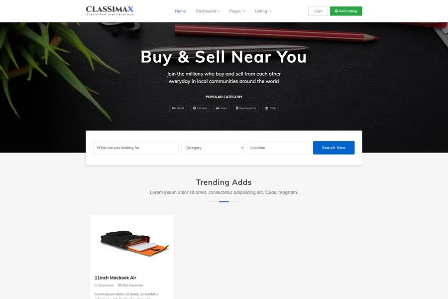 Just upload your content and get the spotlight. The front page of this template shows the major category. And you can add products in depth according to category. You can go a long run with Classimax if you have a proper plan.