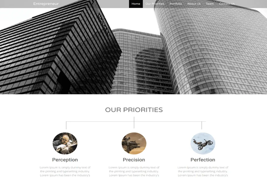 Entrepreneur is a lightweight free HTML5 bootstrap business template for small business owners. Entrepreneur is a responsive free HTML5 Bootstrap business theme for small business owners. It includes all the features that can make a business trustworthy among visitors and targeted customers. The has a sleek hero area with a call to action button. Subsequently, It includes business property to ensure the physical existence, a portfolio to show professional excellence, a team section to introduce team leaders, and a contact form to allow visitors to reach your mail quickly.