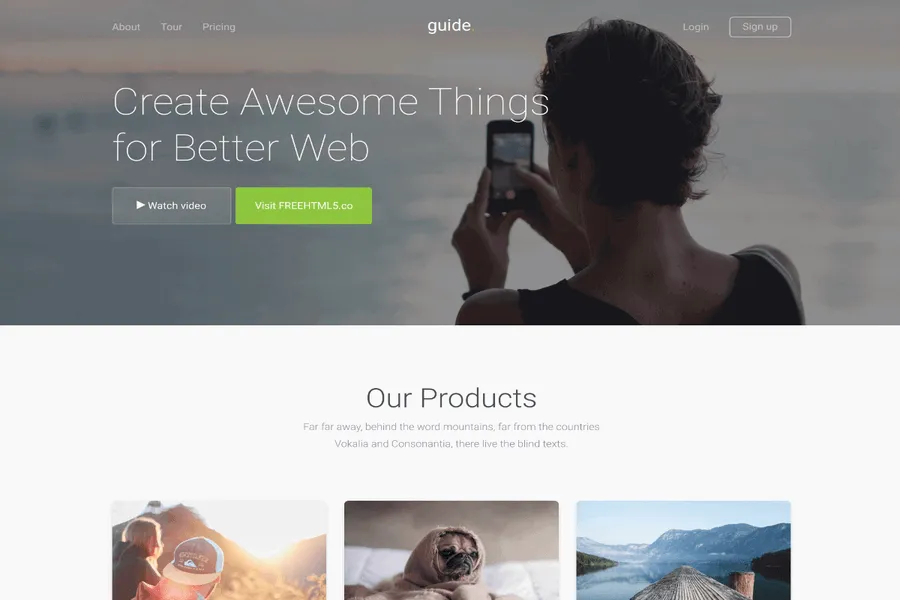 The template is the creation of html5, combined with perfectly crafted with efficient frontend interface and shipped clean and nice above the fold section, simplified product section, product feature details, creatively assembled testimonials, email subscription form, and sleek footer area with social sharing buttons. The responsive business HTML5 website template has numerous well-adorned pages like About, Tour, pricing and login, and signed up.