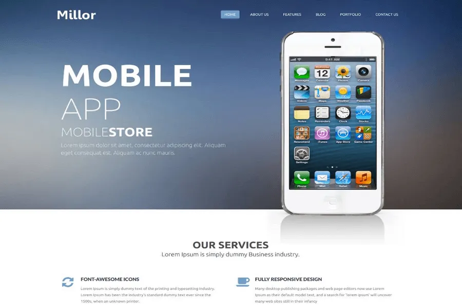 More Info DemoMillor - Mobile App Responsive Bootstrap Website Templates Free