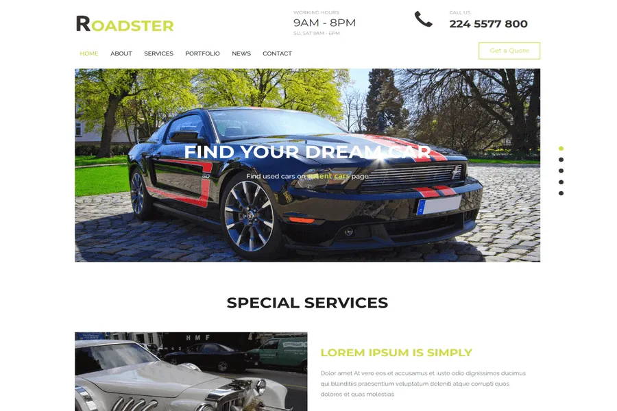 More Info DemoRoadster - Free Transportation Website Template
