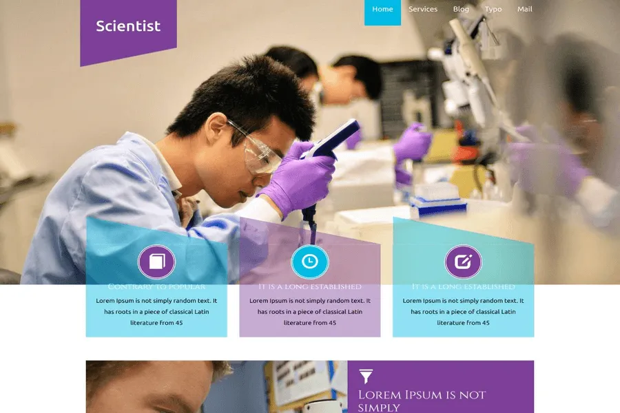 Scientist is the mobile-friendly medical template that would be best fitted with medical laboratory, hospital, medical college, Health Care Center, Chemistry Labs, Forensic lab, and other medical institutions. The template is well-researched UX and saturated with mind-blowing typography. Each section is deliberately designed, adorned with all the essential elements you need.