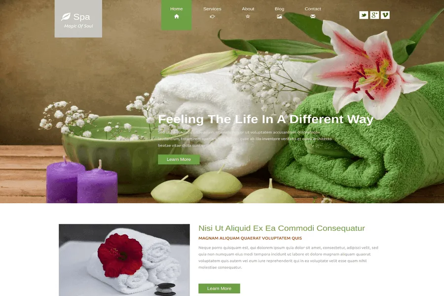 Spa is a modern, gorgeous, and fascinating multi-purpose beauty and spa template that allows high customization and changing. The theme is responsive and mobile-friendly. If you are looking for a tasteful and classical box layout-enabled website template to run your business for hair salons, barbershops, wellness centers, yoga classes, and another healthcare platform, the template will give the unmatched company. The template is multiplied enabled, comes with the homepage, services, about, blog, and contact page.
