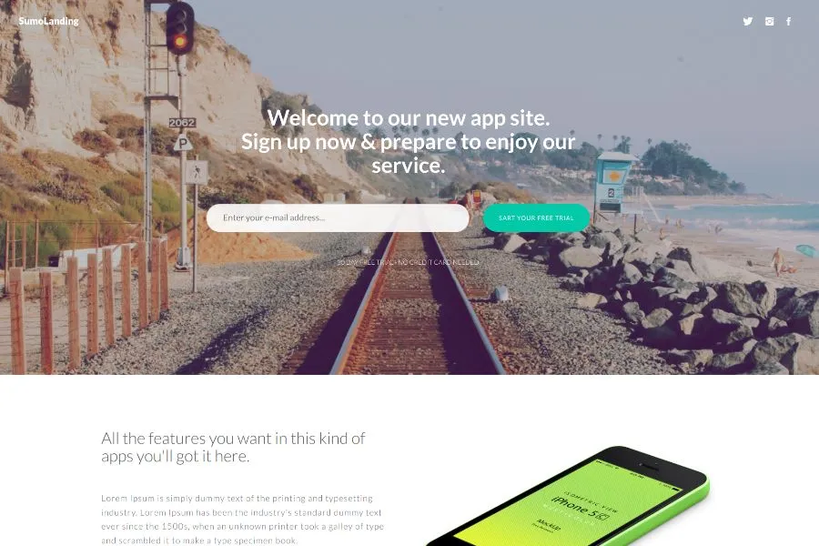 Sumo Landing is a beautiful one-page theme created by LandingSumo. Fresh, well crafted, and good-looking, is ideal for your app page. The landing page bootstrap theme for a mobile app is an innovative, fashionable, and memorable theme, that can showcase your app in an interactive and vibrant way.