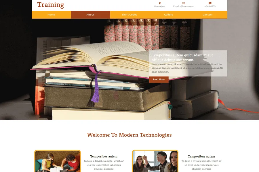 The educational HTML5 website template is simple and minimal, packed with courses gallery, newsletter sign-up form, shortcodes for heading, buttons, badges, alert, navs, profess bars, panels, label, tables, contextual classes, forms, and many more.