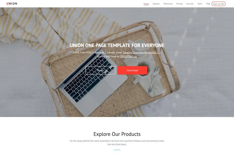 Union is the bright and clean multipurpose free bootstrap template for business and corporate agencies. Union is released under creative commons attribution with the lifetime license agreement. It has an astounding homepage with two buttons on it to take visitors' to diverse destinations. The template is basically is the best fit for software or digital product selling platform. If you're a software engineer, graphic designer, web developer, you can sell your creative products with this template seamlessly.