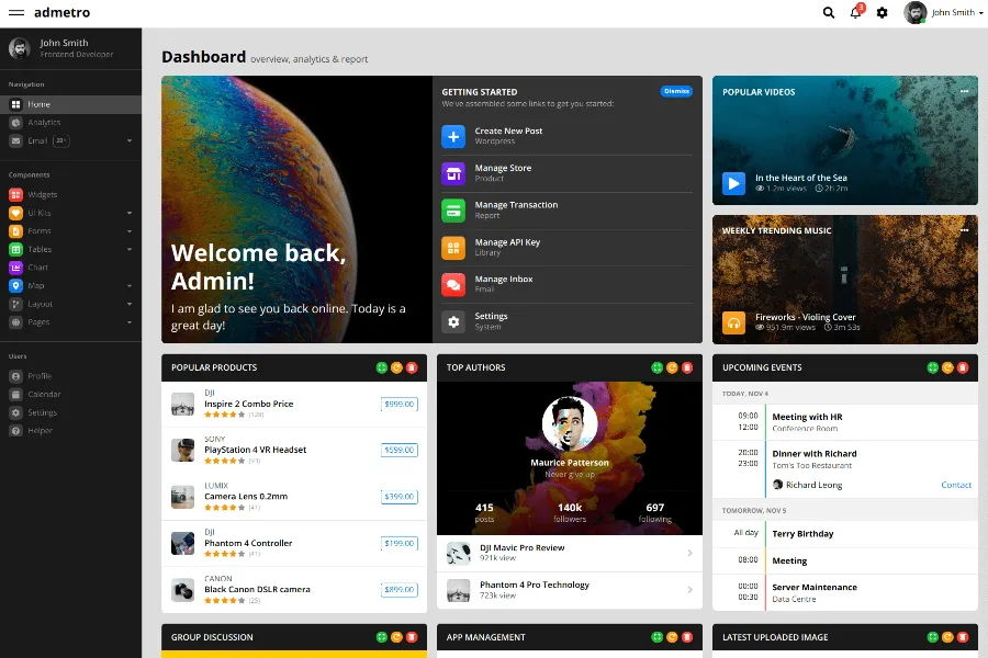Well, Admetro is the last template in this last and perhaps, this one is the most creative admin dashboard template in this list. The design concept of this template is based on the current IOS version. That is why the interface of this template is a bit different from other traditional templates. Actually, the author tries to ensure the best user experience here. It comes with 7-page options, 20+ color themes, compatible with 30 jquery plugins, and a huge number of UI components. If you like something uncommon, then you could use this template for your dashboard.