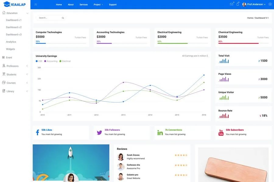 Are you looking for a dedicated dashboard template for the educational institute? Well, smart could be a good solution in this case. this template is developed based on google material design concept and is suitable for maintaining the school, college, or university web applications.