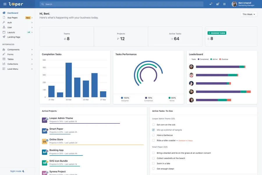 Looper Is another responsive admin dashboard template from Getbootstrap. This responsive and well-documented template comes with 40+ ready pages. as the author of this template update this template regularly, you will get necessary features from time to time. apart from the stunning features, you will get quality support from the author for a certain period.