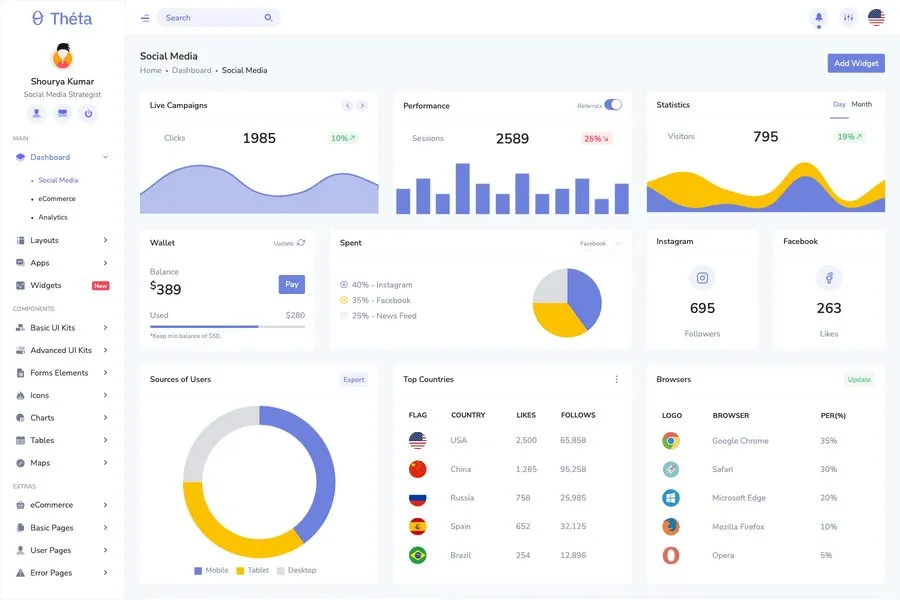 Are you looking for a lightweight and feature-rich bootstrap admin dashboard template? well, Spica could be a good choice indeed. this responsive template comes with cross-browser compatibility. The inclusion of a huge number of UI components, plugins, and widgets makes this template special and user-friendly.