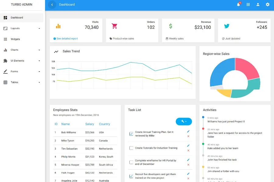 Turbo is another premium Html dashboard from an elite author of Themeforest. This responsible and full-featured admin dashboard template comes with a lot of plugins and reusable components. The overall appearance of this template is very simple and classic.