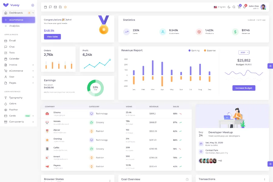Vuse is a modern and advanced admin dashboard template based on vue.js and vuetify.js. This flexible and responsive template comes with very well documentation and a clean code structure. This one is very helpful to the developer especially to start their project immediately with this template.