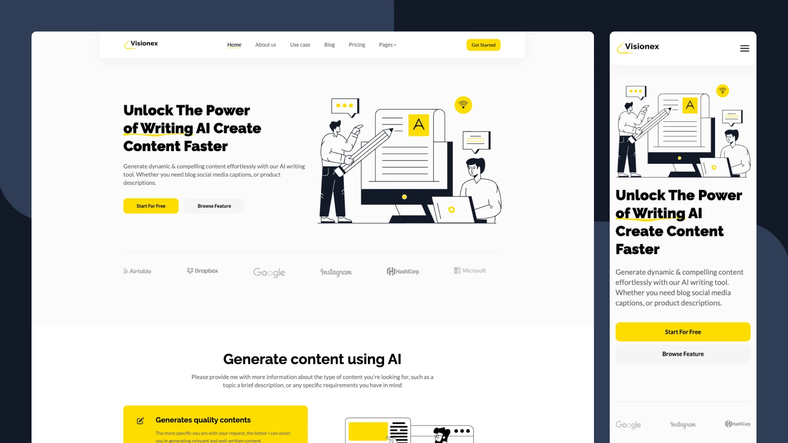 Visionex has a sleek, innovation-driven layout with product, blog, and pricing pages, a fully responsive design, and SEO optimization for tech-specific keywords.
